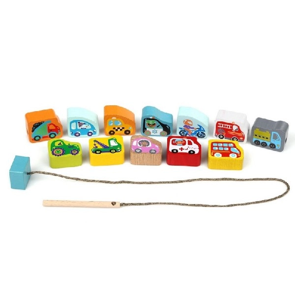 Το σετ επιτρέπει στα παιδιά να αναπτύξουν τη λεπτή κινητικότητα και τον συντονισμό περνώντας τα μπλοκ σε κορδόνι.