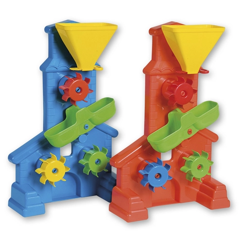 Ο πρακτικός και ανθεκτικός μύλος για άμμο και νερό ANDRONI χαρίζει στα παιδιά χαρά στην εξερεύνηση των φυσικών στοιχείων. Οι τρεις πτερωτοί τροχοί τίθενται εύκολα σε κίνηση από τη ροή του νερού ή την πτώση της άμμου, ενώ το διαχωριστικό αυλάκι κατευθύνει τη ροή τους. Χάρη στη φαρδιά βάση, το παιχνίδι παραμένει σταθερό ακόμη και σε ανώμαλες επιφάνειες.