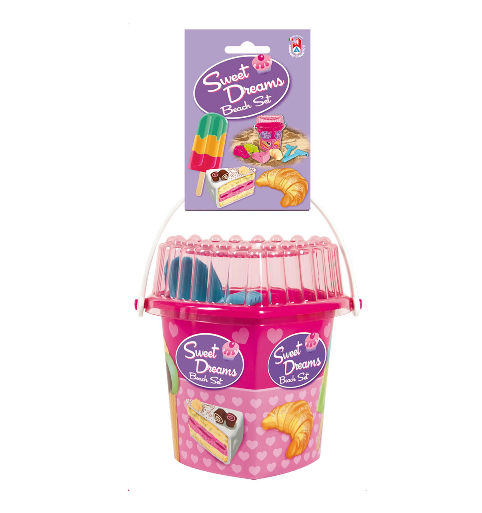 Με αυτό το χαριτωμένο σετ άμμου τα παιδιά δημιουργούν τα πρώτα τους γλυκά. Ο κουβάς σε σχήμα καρδιάς με πρακτικό καπάκι, το φαρασάκι, η τσουγκράνα και τα θεματικά καλούπια ενισχύουν τη λεπτή κινητικότητα, τη δημιουργικότητα και το παιχνίδι ρόλων. Τα κομμάτια είναι φτιαγμένα από ανθεκτικό και μη τοξικό πλαστικό στην Ιταλία.
