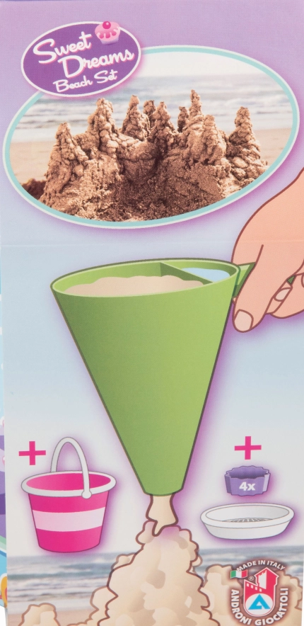 Διασκεδαστικό σετ 8 τεμαχίων για άμμο από τη μάρκα Androni που θα χαροποιήσει τους μικρούς οικοδόμους από 12 μηνών. Περιλαμβάνει κουβαδάκι, διάφανο κόσκινο σε σχήμα τούρτας, φτυαράκι, 4 καλουπάκια και διακοσμητικό χωνί για ανάμειξη άμμου και νερού. Χάρη στην ποιοτική ιταλική κατασκευή από ανθεκτικό πλαστικό, τα παιδιά θα απολαύσουν ώρες δημιουργίας και ανάπτυξης κινητικών δεξιοτήτων. Εξαιρετική επιλογή για παιδική χαρά και παραλία.