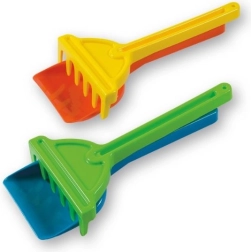 Πρακτικό σετ για μικρούς κηπουρούς που περιλαμβάνει φτυάρι και τσουγκράνα από ανθεκτικό πλαστικό. Ιδανικό για παιχνίδι στο sandbox και στον κήπο. Χάρη στις συμπαγείς διαστάσεις του, κρατιέται άνετα από παιδιά 3+ ετών. Η χρωματική εκδοχή είναι μίξη και μπορεί να διαφέρει ανάλογα με τη διαθεσιμότητα.