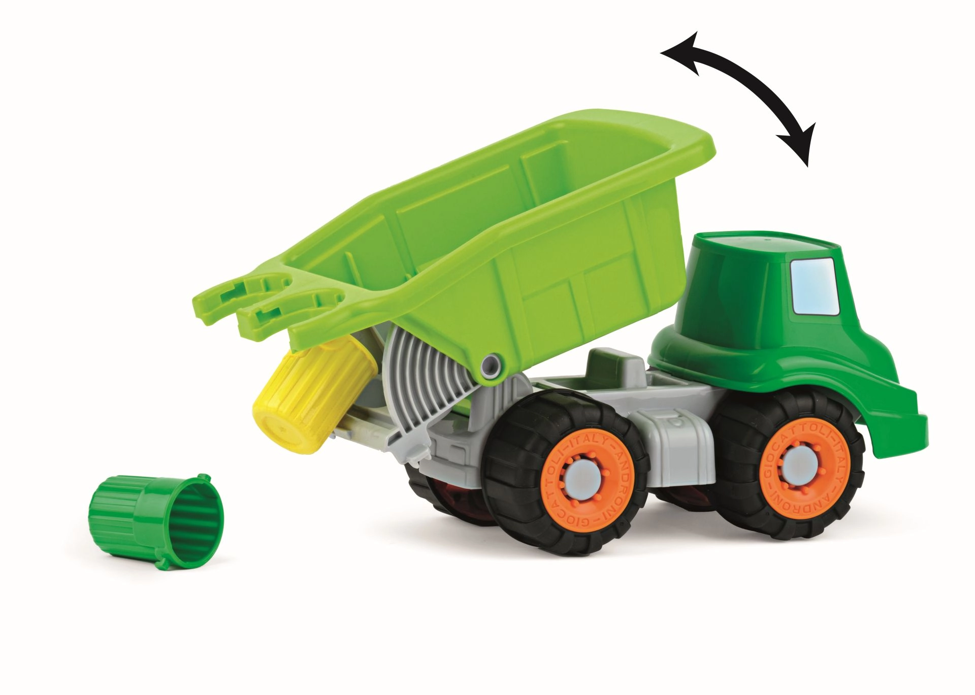 Αυτοκίνητο για μικρούς οικολόγους σκουπιδιάρηδες με κινούμενη καρότσα και δύο κάδους απορριμμάτων. Χάρη στους ελαστικούς τροχούς η οδήγηση είναι ομαλή και εύκολη. Κατασκευασμένο από ποιοτικά πλαστικά.