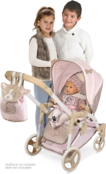 Γοητευτικό καροτσάκι για κούκλες σε ροζ-μπεζ τόνους που προσφέρει εξαιρετικό συνδυασμό σχεδιασμού και λειτουργικότητας. Χάρη στο ρυθμιζόμενο λίκνο που μετατρέπεται εύκολα σε αθλητικό κάθισμα, τα παιδιά απολαμβάνουν πιο ρεαλιστικό παιχνίδι. Περιλαμβάνεται επίσης φορητή τσάντα για την κούκλα με απαλή βελούδινη κεντημένη λεπτομέρεια DIDI και πρακτικό προστατευτικό πορτάκι κατά του αέρα.