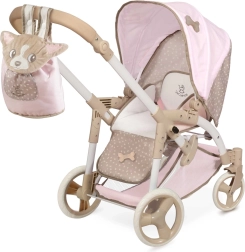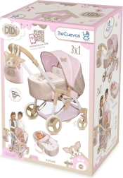 Στυλάτο παιδικό καροτσάκι για κούκλες 3 σε 1 από απαλή συλλογή με θέμα το κουταβάκι DIDI που θα ενθουσιάσει κάθε μικρή μαμά. Προσφέρει ρυθμιζόμενο λίκνο και αθλητικό κάθισμα, φορητή τσάντα με χαριτωμένο κέντημα, ρυθμιζόμενη λαβή ύψους έως 80 cm και περιστρεφόμενους μπροστινούς τροχούς για εύκολη οδήγηση. Πρακτικό μεγάλο καλάθι, ζώνη 3 σημείων και ποιοτική ισπανική κατασκευή από μέταλλο, πλαστικό και ύφασμα εξασφαλίζουν ασφαλές και διασκεδαστικό παιχνίδι.