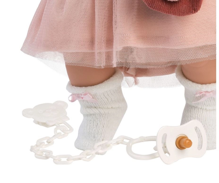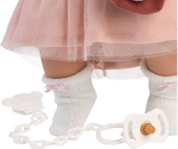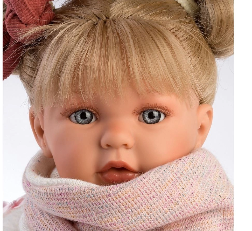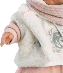 Η κούκλα από το εργαστήριο της Llorens αποτελεί εγγύηση ποιοτικής και ασφαλούς διασκέδασης. Είναι φτιαγμένη με μέγιστη ακρίβεια και χρησιμοποιεί μόνο υφάσματα από επώνυμες μάρκες. Η Julia μπορεί να κλαίει και να λέει «μαμά» και «μπαμπά» όταν της βγάζετε την πιπίλα. Η υπέροχη εμφάνισή της συμπληρώνεται από κομψά ρούχα: δίχρωμη μπλούζα με στάμπα, τούλινη φούστα, γουνένο γιλέκο, λευκές κάλτσες με φιογκάκια και ροζ φουλάρι, δημιουργώντας ένα τέλειο σύνολο που προσφέρει ώρες διασκέδασης.