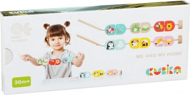 Το παιδικό ξύλινο σετ Cubika «Πού ζούμε» συνδυάζει μάθηση και διασκέδαση. Τα παιδιά βρίσκουν τα σωστά ζευγάρια – το ζωάκι και το σπίτι του – και τα περνούν στο κορδόνι, εκπαιδεύοντας φυσικά τη λεπτή κινητικότητα και τη λογική σκέψη. Τα κομμάτια είναι πολύχρωμα, ανθεκτικά και ευχάριστα στο κράτημα.