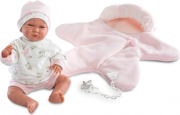 Χαρίστε στην κούκλα σας ξεχωριστή άνεση και στυλ με αυτό το 3-κομμάτινο ρουχαλάκι Llorens. Ο πρωταγωνιστής του σετ είναι η διπλής όψεως fleece ολόσωμη φόρμα σε σχήμα αστεριού, που είναι ιδιαίτερα απαλή, ζεστή και ιδανική για αγκαλιές και χειμερινές βόλτες με την κούκλα. Χάρη στο καθολικό μέγεθος εφαρμόζει τέλεια σε κούκλες NEW BORN 40–42 cm.