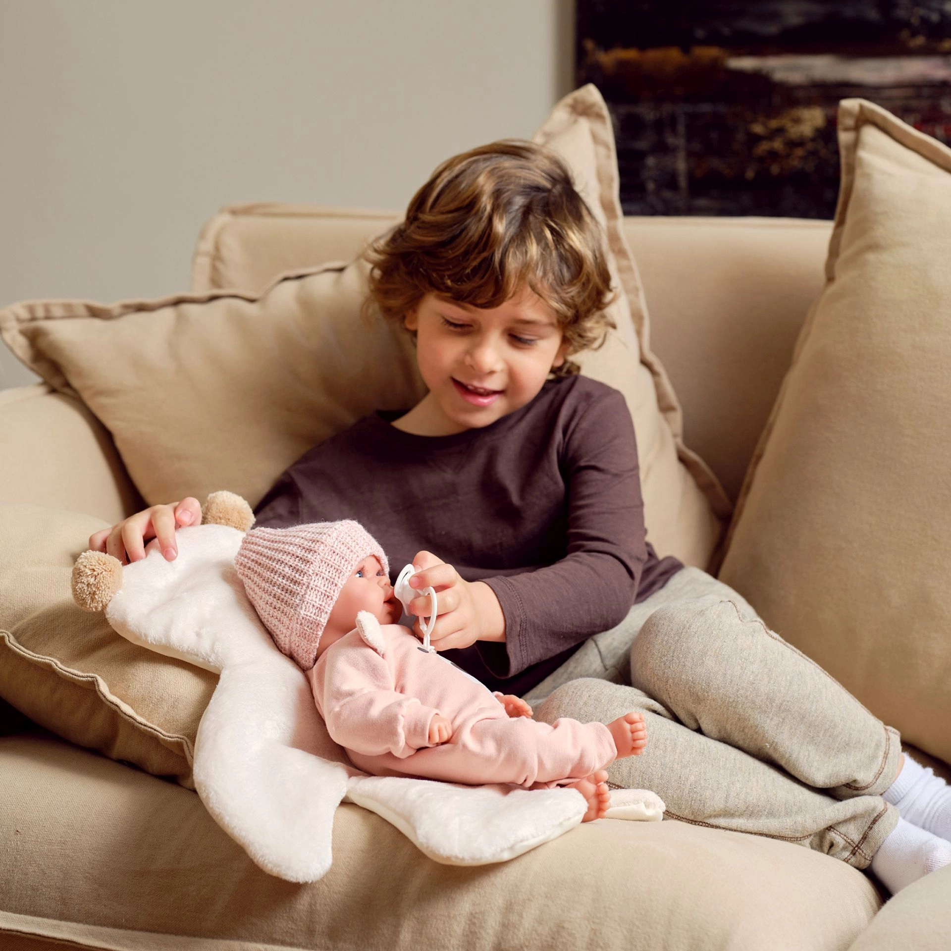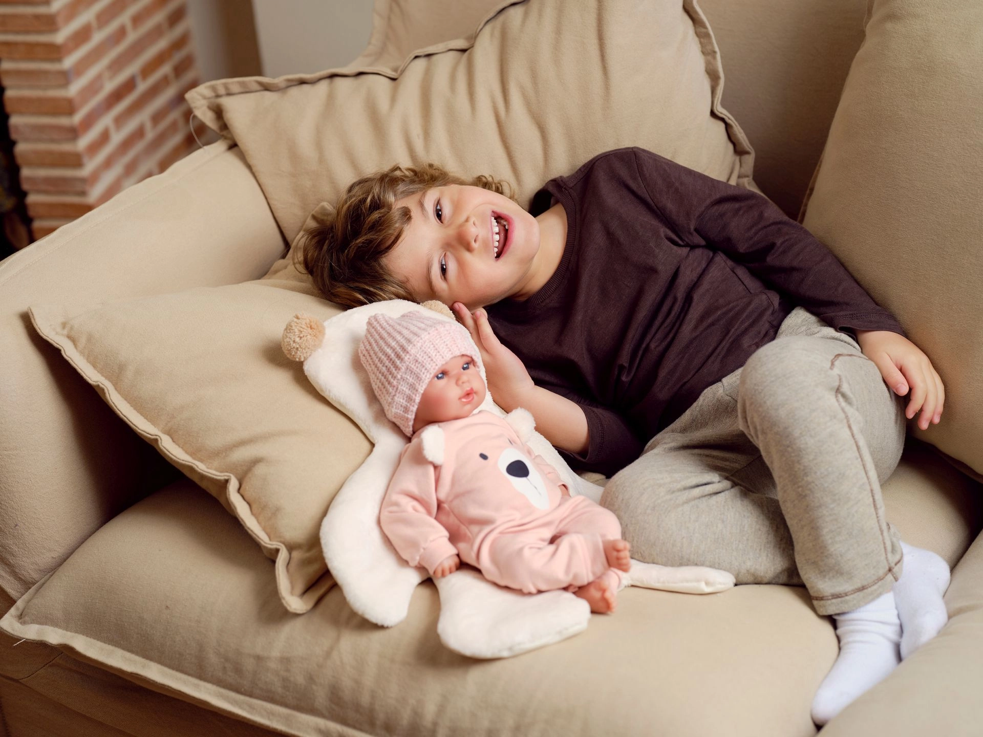 Το υφασμάτινο σώμα είναι απαλό και ελαφρύ, ιδανικό για αγκαλιές και καθημερινό παιχνίδι. Η κούκλα είναι έτσι ευχάριστη και για μικρότερα παιδιά.