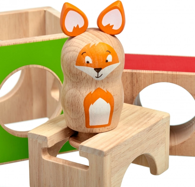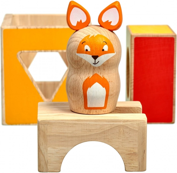 Αυτό το ξύλινο εκπαιδευτικό παιχνίδι περιλαμβάνει τρεις συμπαγείς κύβους με εγκοπές διαφόρων σχημάτων, ξύλινη φιγούρα αλεπούς και σετ διπλής όψεως καρτών αποστολών διαφορετικής δυσκολίας. Τα παιδιά, ακολουθώντας τα πρότυπα, στήνουν και συνδυάζουν τους κύβους ώστε η αλεπού να «κρυφτεί» σωστά, εξασκώντας στρατηγική και χωρική αντίληψη.