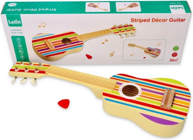 Η κιθάρα ξεχωρίζει με το πολύχρωμο ριγέ μοτίβο της, που μαγεύει κάθε παιδί.
