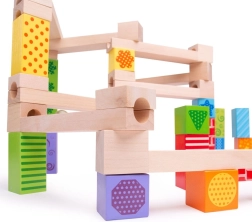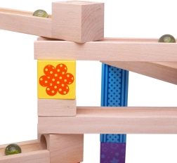 Η πίστα ενισχύει τον χωρικό προσανατολισμό, τη λεπτή κινητικότητα και τη λογική σκέψη. Τα παιδιά θα γοητευτούν βλέποντας τις μπίλιες να κυλούν απαλά στην πίστα που δημιούργησαν μόνα τους.