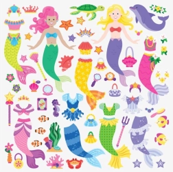 Πολύχρωμα μοτίβα θαλάσσιων νεράιδων, ζωάκιων και αξεσουάρ επιτρέπουν στα παιδιά να συνθέτουν συνεχώς νέες σκηνές και ιστορίες χωρίς περιορισμούς.