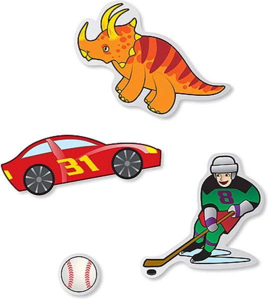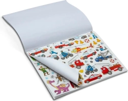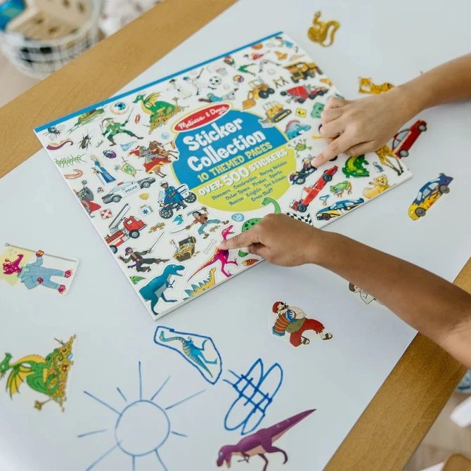 Τα αυτοκόλλητα είναι οργανωμένα σε 10 θέματα, όπως δεινόσαυροι, σπορ, αυτοκίνητα και διάστημα – τα παιδιά βρίσκουν γρήγορα αυτό που τους αρέσει.