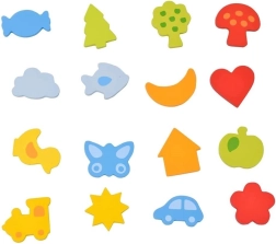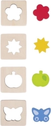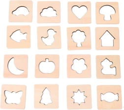 Το αισθητηριακό παιχνίδι «Αναγνώριση σχημάτων σε πλαίσιο» είναι φτιαγμένο από ποιοτικό φυσικό ξύλο. Περιλαμβάνει 16 πλαίσια διαστάσεων 5,9 x 5,9 cm και 16 χρωματιστά σκαλιστά σχήματα, τα οποία διεγείρουν την αφή και τις αισθητηριακές εμπειρίες των παιδιών. Με απλή συναρμολόγηση και αναζήτηση σχημάτων μέσα στο πουγκί, επιτυγχάνεται διασκεδαστική μάθηση. Το παιχνίδι μπορεί να παιχτεί με διάφορους τρόπους, συμπεριλαμβανομένης της αναζήτησης σχημάτων μόνο μέσω της αφής, κάτι που ενισχύει τη γοητεία του.