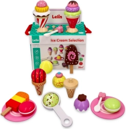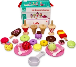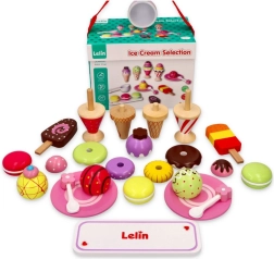 Με το κομψό ξύλινο σετ παγωτών της Lelin, κάθε παιδί γίνεται παγωτατζής. Το σετ περιλαμβάνει 25 πολύχρωμα κομμάτια και είναι ιδανικό για παιδιά άνω των 3 ετών. Τα παιχνίδια είναι κατασκευασμένα από λακαρισμένο ξύλο και συσκευάζονται σε ανθεκτικό κουτί με βολικό καπάκι και χερούλι για εύκολη μεταφορά.