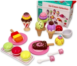 Τα πολύχρωμα ξύλινα παγωτά και γλυκίσματα ενθαρρύνουν τα παιδιά να δημιουργήσουν τη δική τους ιστορία παγωτατζίδικου και να παίξουν ρόλους.
