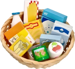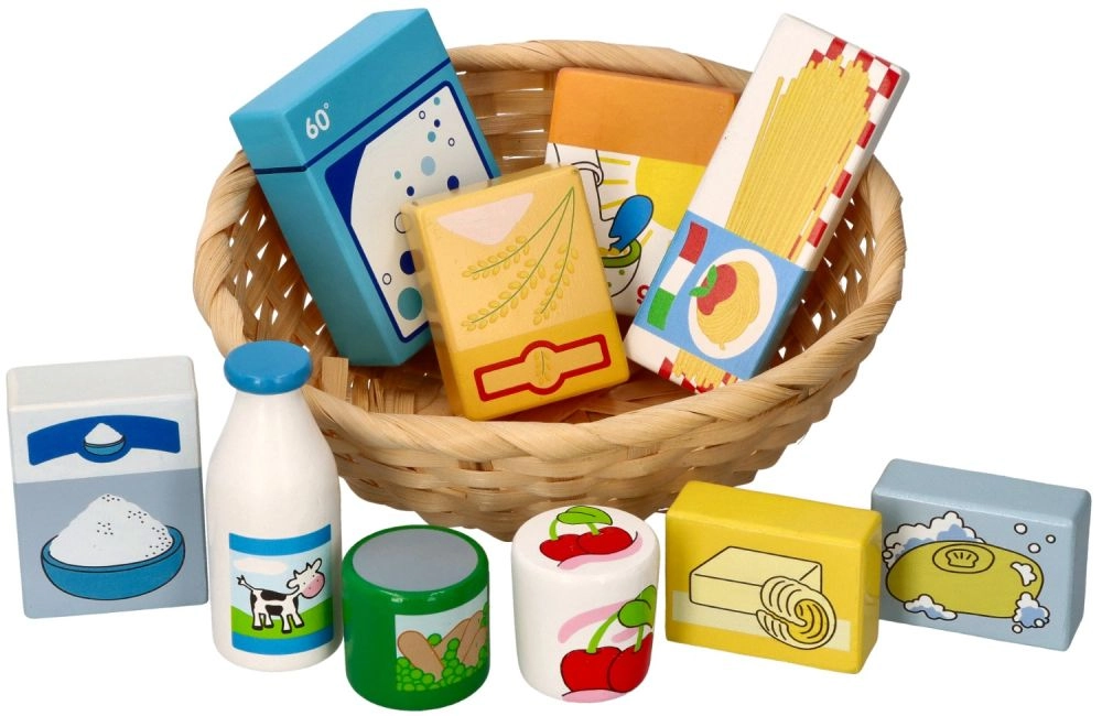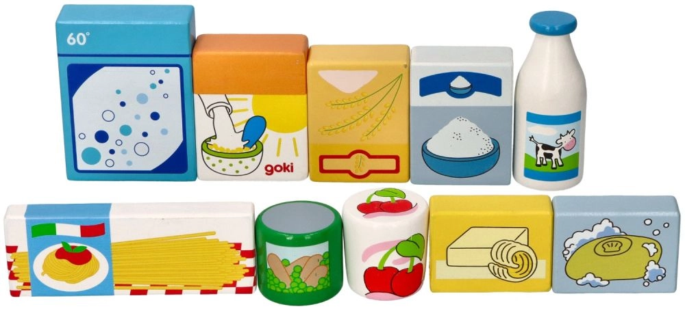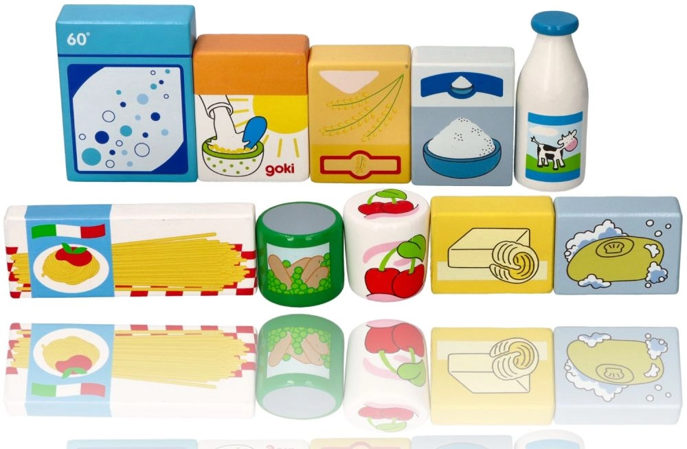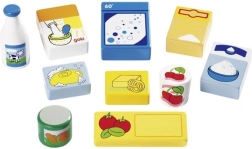 Πολύχρωμα ξύλινα κομμάτια που θυμίζουν καθημερινά τρόφιμα (γάλα, ζυμαρικά, δημητριακά κ.ά.) και παρακινούν τα παιδιά σε φυσική μάθηση μέσα από το παιχνίδι.
