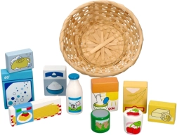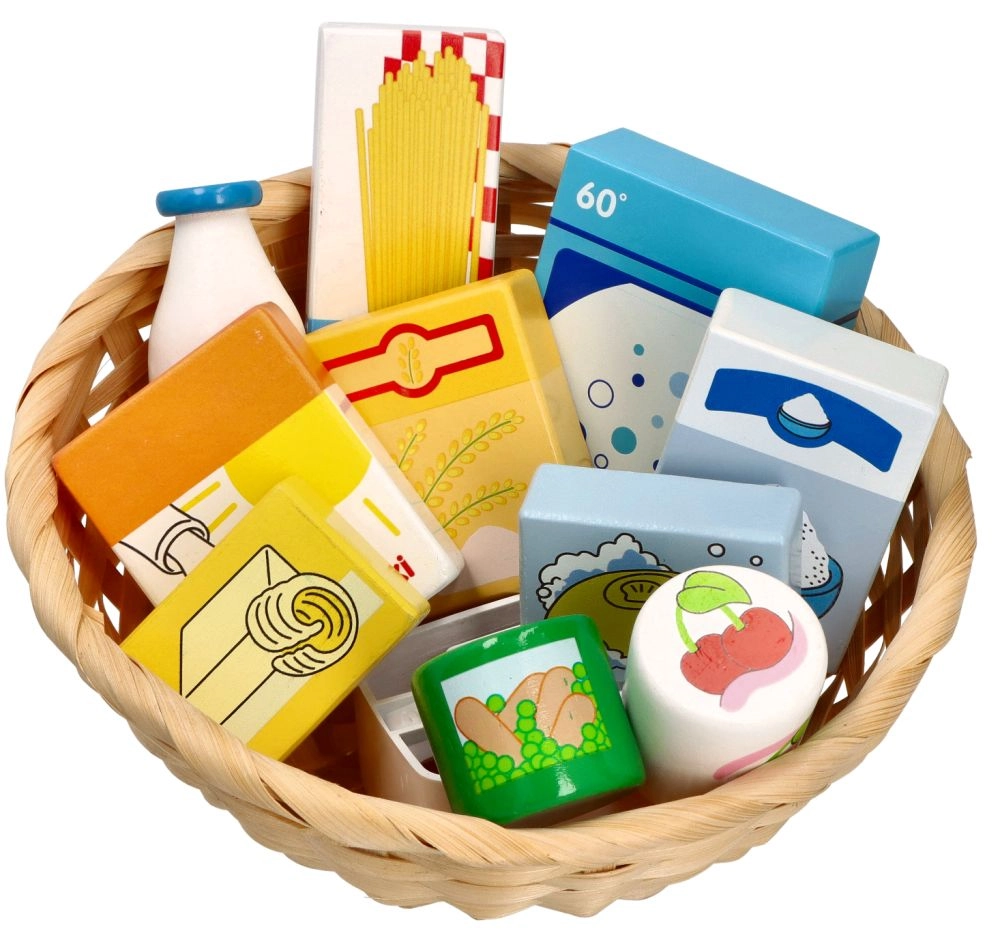 Αυτό το χαριτωμένο σετ για παιδικό μπακάλικο περιλαμβάνει επιλογή ξύλινων τροφίμων σε φυσικό πλεκτό καλάθι. Χάρη στην ρεαλιστική εμφάνιση και τα έντονα χρώματα, τα παιδιά εξασκούν λεξιλόγιο, λεπτή κινητικότητα και κοινωνικές δεξιότητες παίζοντας τον πωλητή και τον πελάτη.