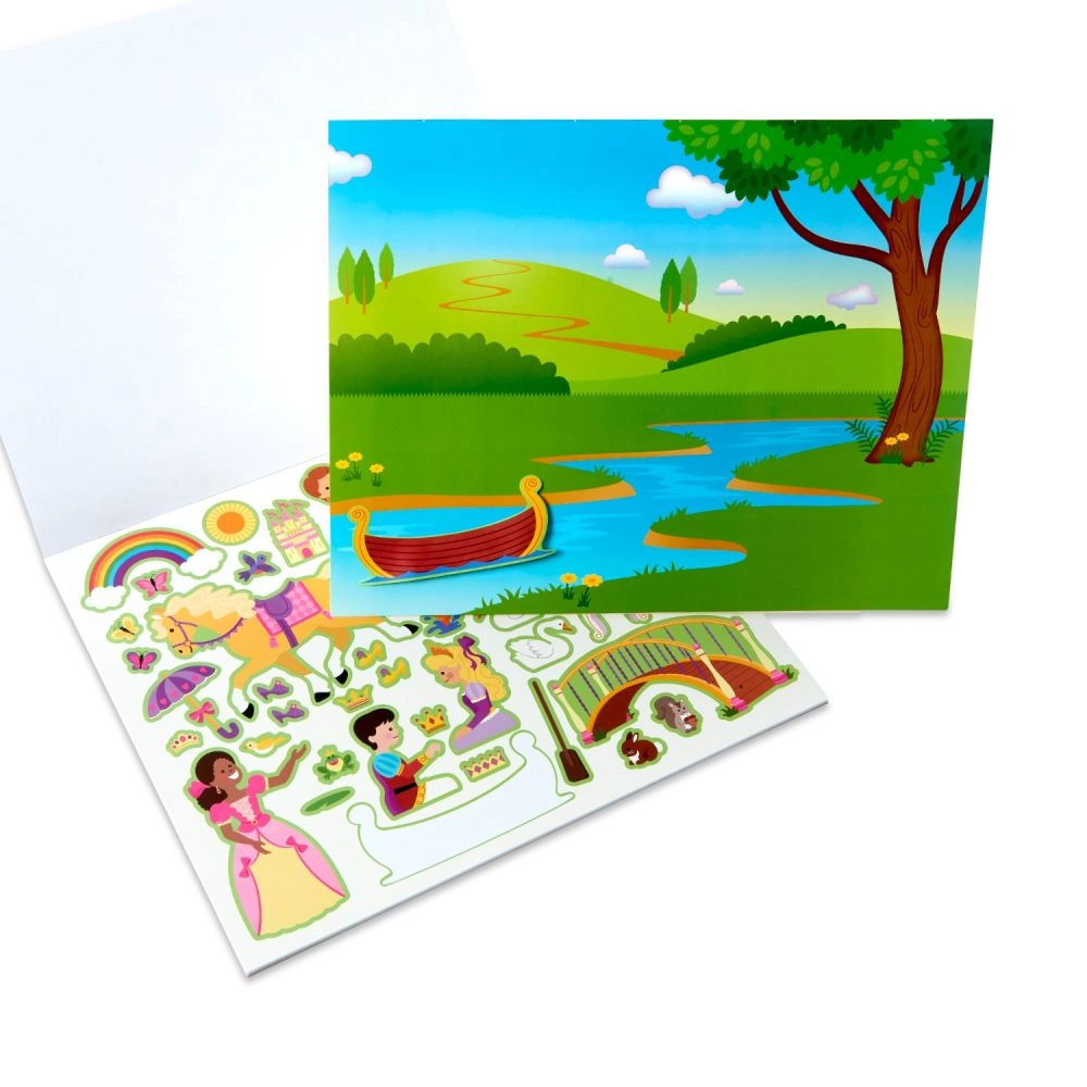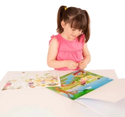 Τα αυτοκόλλητα μπορούν να κολληθούν και να μετακινηθούν επανειλημμένα, ώστε τα παιδιά να αλλάζουν εύκολα την ιστορία και να συνθέτουν νέες σκηνές.