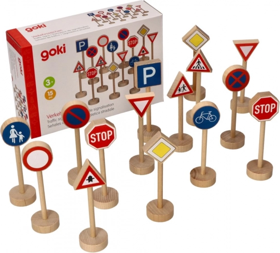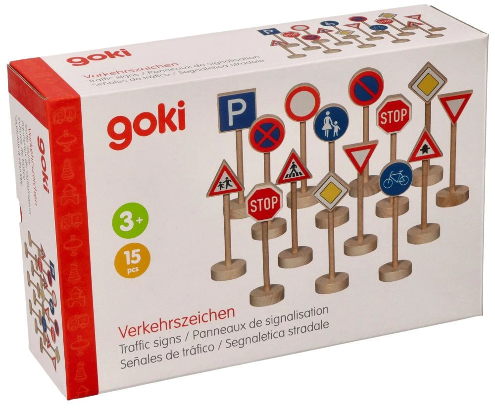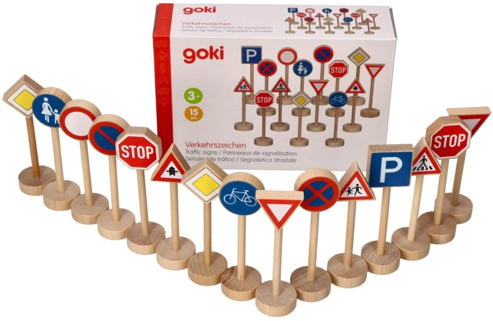 Ανακαλύψτε το διασκεδαστικό και εκπαιδευτικό σετ με ξύλινες πινακίδες κυκλοφορίας Goki, που βοηθά τα παιδιά να μάθουν με παιγνιώδη τρόπο τους κανόνες οδικής κυκλοφορίας. Οι ανθεκτικές πινακίδες από μασίφ ξύλο με μη τοξικά χρώματα είναι ιδανικές για παιχνίδι με αυτοκινητάκια και σε πίστες. Κρατιούνται εύκολα, έχουν ύψος 11 εκ. και στη συσκευασία θα βρείτε 15 τεμάχια για ρεαλιστικές οδικές σκηνές.