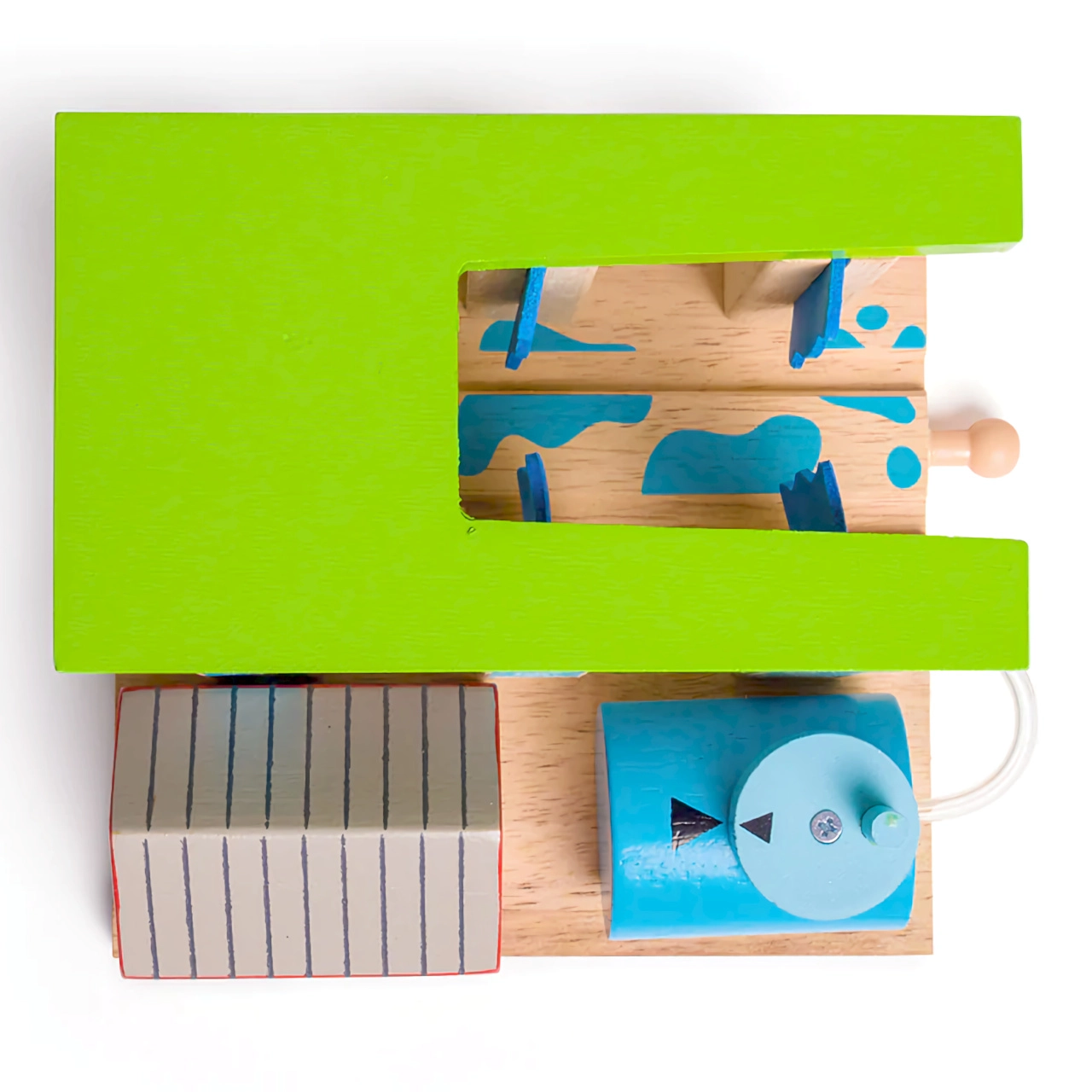 Ρυθμίστε τους στύλους ώστε το τρένο να περάσει απλά ή ώστε οι βούρτσες να το “πλύνουν”. Τα παιδιά θα αγαπήσουν την αλλαγή σεναρίων και θα εξασκήσουν τη λεπτή κινητικότητα.