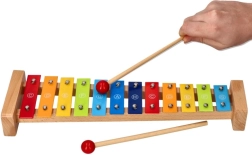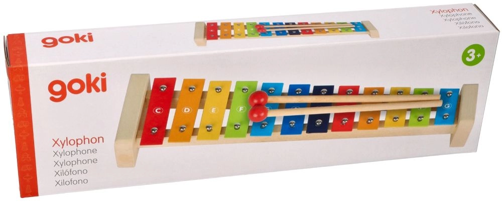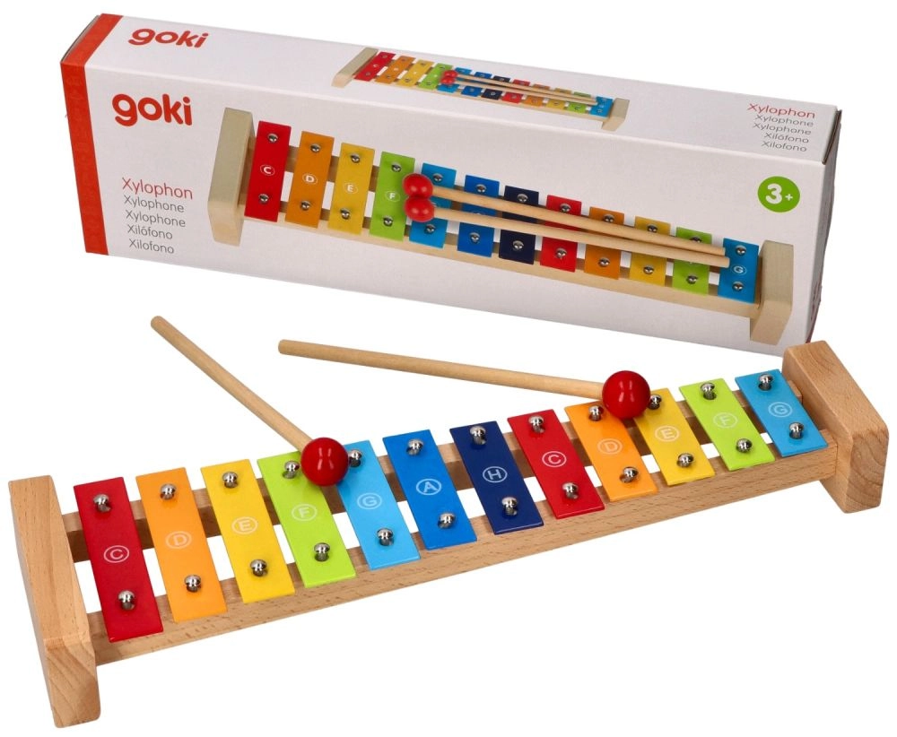 Το πολύχρωμο ξυλόφωνο Goki με τραγουδοβιβλίο Ουράνιο Τόξο είναι εξαιρετική επιλογή για την πρώτη επαφή με τη μουσική. Η στιβαρή ξύλινη κατασκευή σε συνδυασμό με τις μεταλλικές πλάκες εξασφαλίζει ευχάριστο ήχο και μεγάλη διάρκεια ζωής. Χάρη στις ονομασίες των νοτών πάνω στις πλάκες και την έγχρωμη καθοδήγηση στο τραγουδοβιβλίο, τα παιδιά κατανοούν εύκολα τη σχέση ανάμεσα στα χρώματα, τους τόνους και τις απλές μελωδίες.