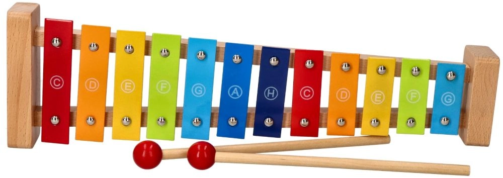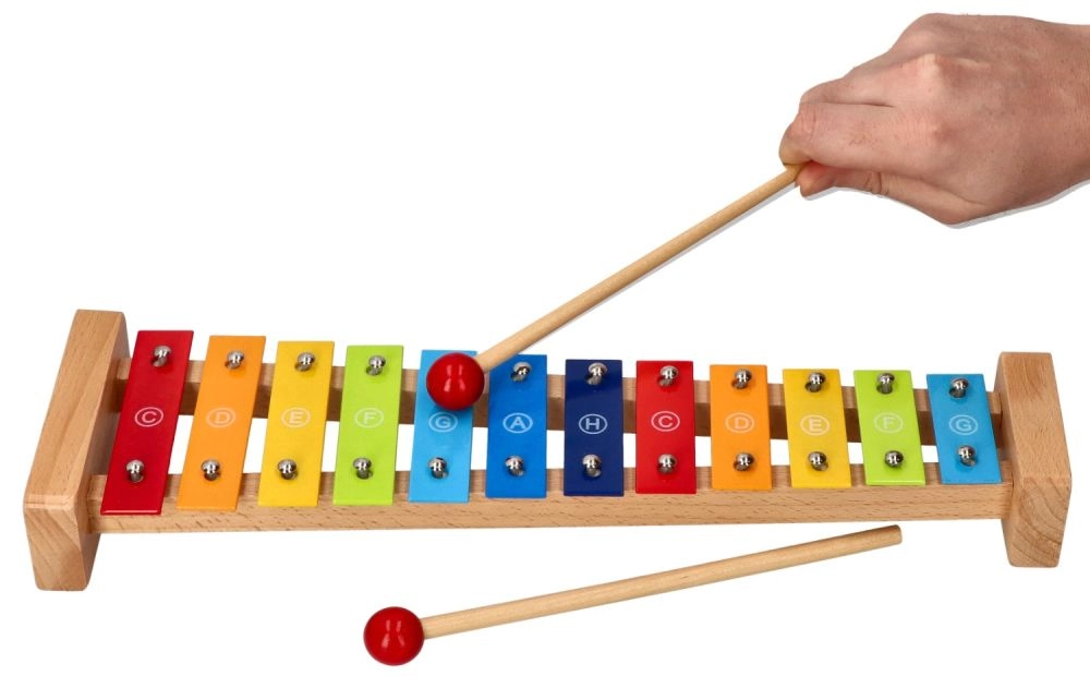 Οι πολύχρωμες πλάκες με τις ονομασίες των νοτών και το τραγουδοβιβλίο επιτρέπουν στα παιδιά να παίξουν εύκολα τις πρώτες μελωδίες και να αναπτύξουν τη μουσικότητά τους.
