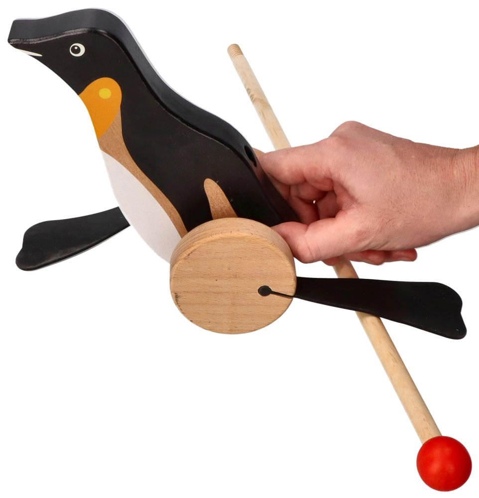 Το ξύλινο παιχνίδι έλξης σε σχήμα πιγκουίνου προσφέρει χαρά και αναπτύσσει τα παιδιά μέσα από το παιχνίδι.