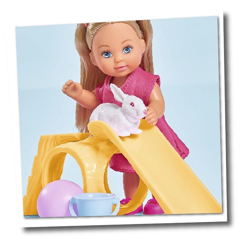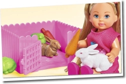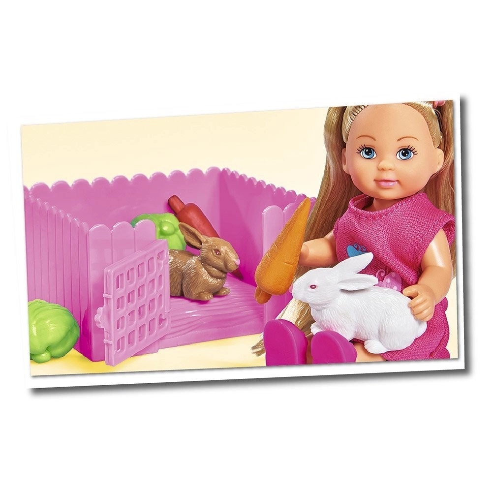 - Κούκλα Steffi, κούκλα Evi, 4 ζωάκια, τραπέζι, σπιτάκι σκύλου, κλουβί για κουνέλι, παιδότοπος και άλλα αξεσουάρ