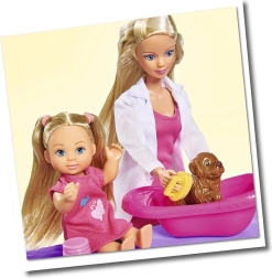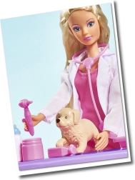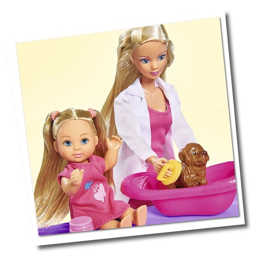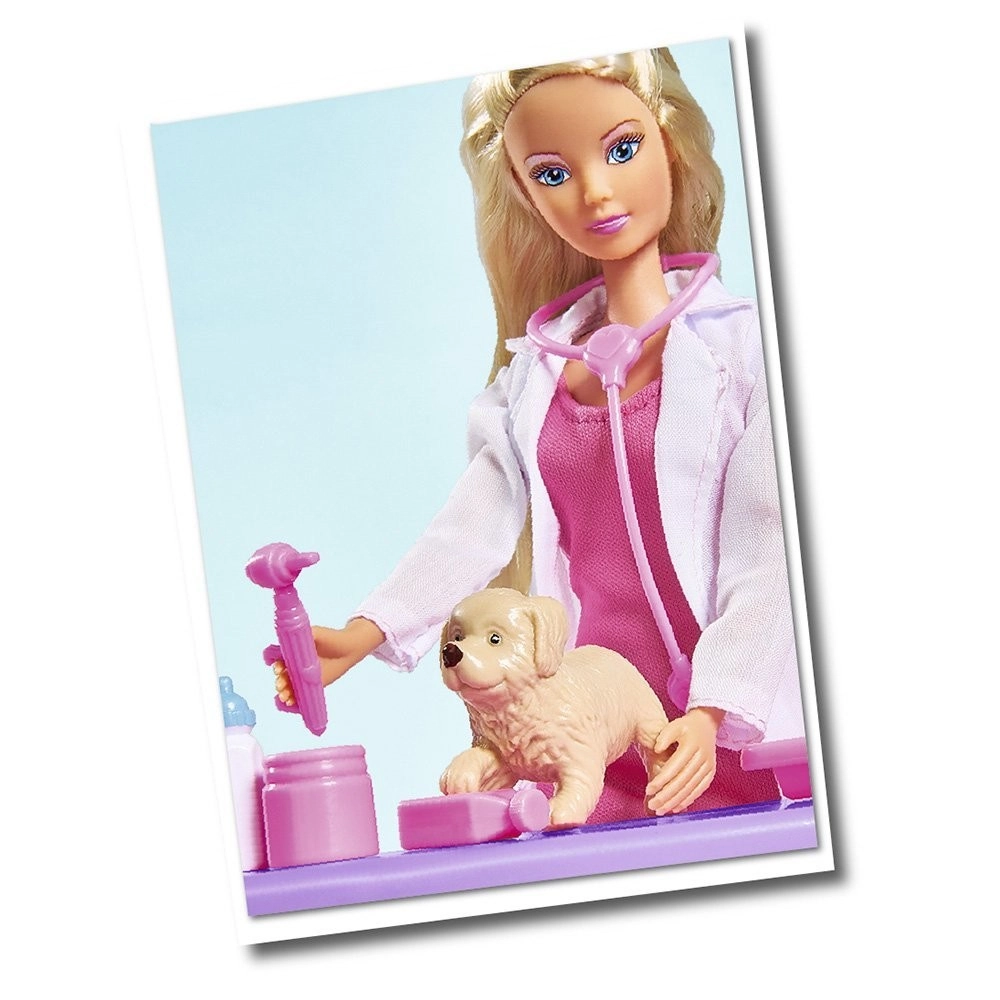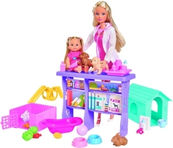 Με το σετ Steffi κτηνίατρος τα παιδιά παίζουν εύκολα την κλινική φροντίδας κατοικιδίων. Η κούκλα Steffi (29 cm) μαζί με τη μικρή Evi (12 cm) φροντίζουν τέσσερα χαριτωμένα ζωάκια και χρησιμοποιούν διάφορα αξεσουάρ που κάνουν το παιχνίδι διασκεδαστικό και εκπαιδευτικό.