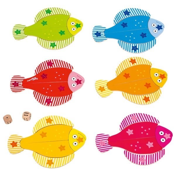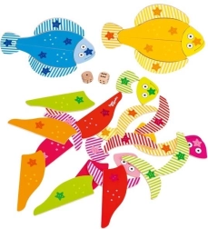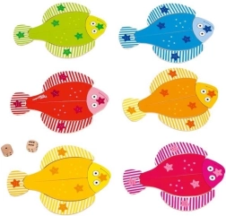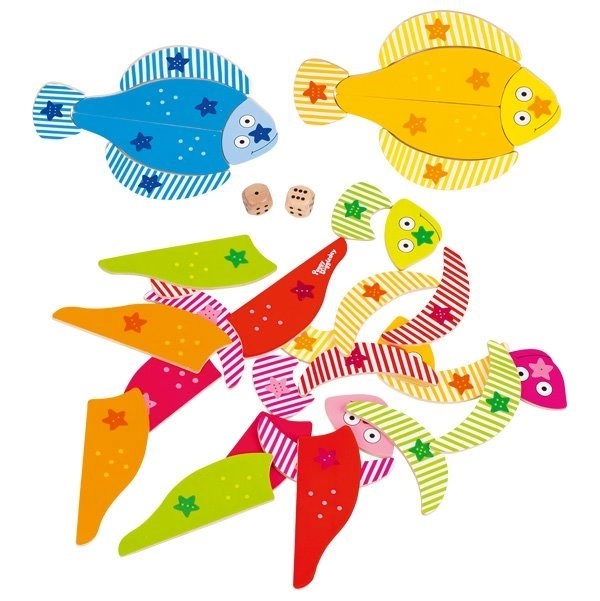 Αυτό το πολύχρωμο ξύλινο παιχνίδι από τη μάρκα GOKI έχει σχεδιαστεί ώστε όχι μόνο να διασκεδάζει, αλλά και να εκπαιδεύει τα παιδιά. Αποτελείται από παζλ ψαριών, τα οποία πρέπει να ολοκληρωθούν με τη βοήθεια ρίψης ζαριού, κάνοντας το παιχνίδι όχι μόνο διασκεδαστικό αλλά και συναρπαστικό. Ο κατασκευαστής δίνει έμφαση στην ασφάλεια και την υγιεινή καταλληλότητα των υλικών, που είναι φιλικά προς το περιβάλλον.