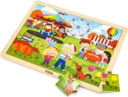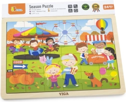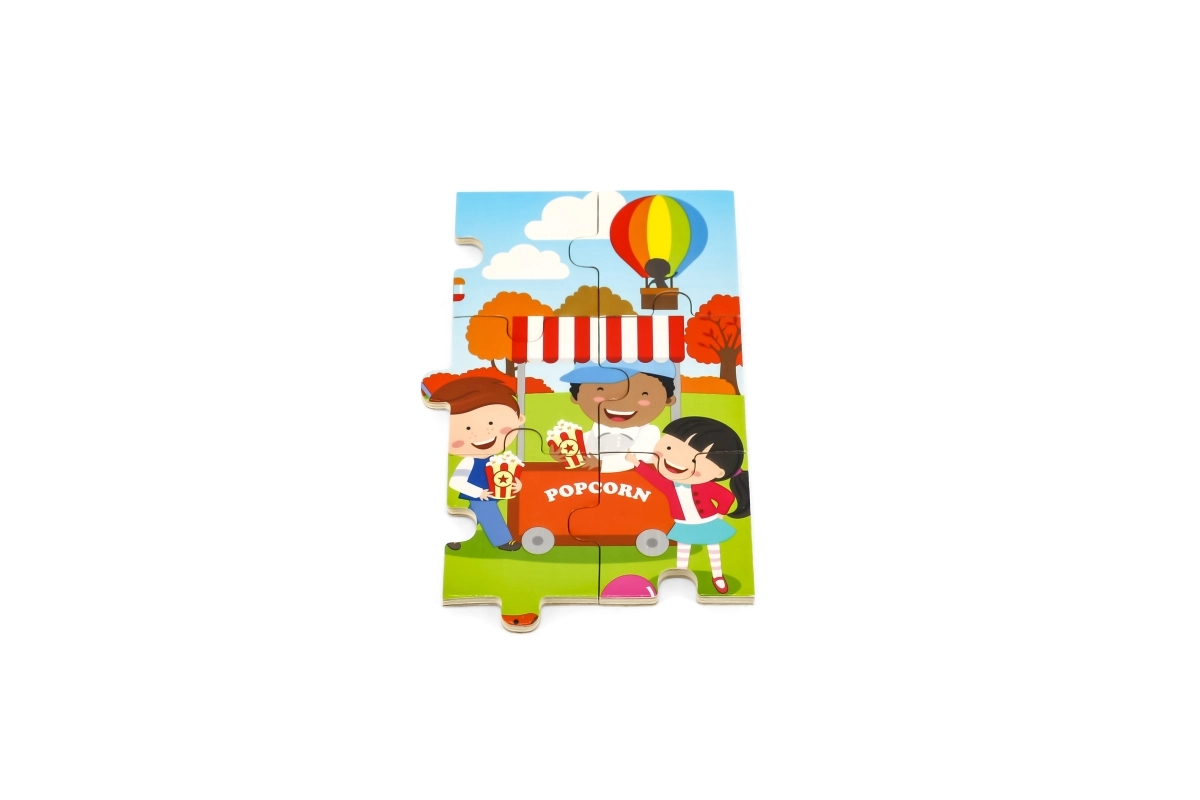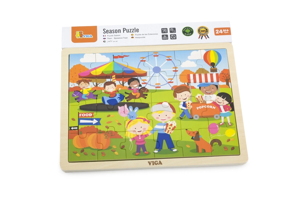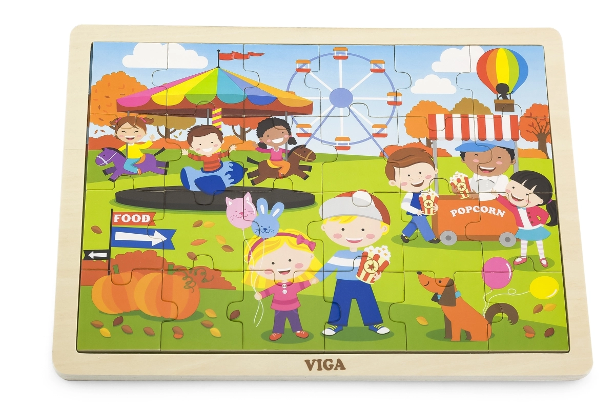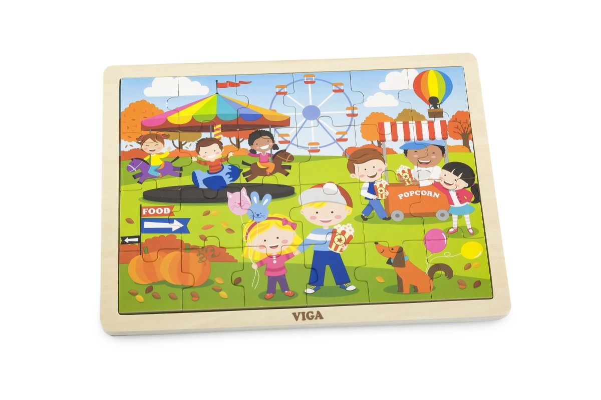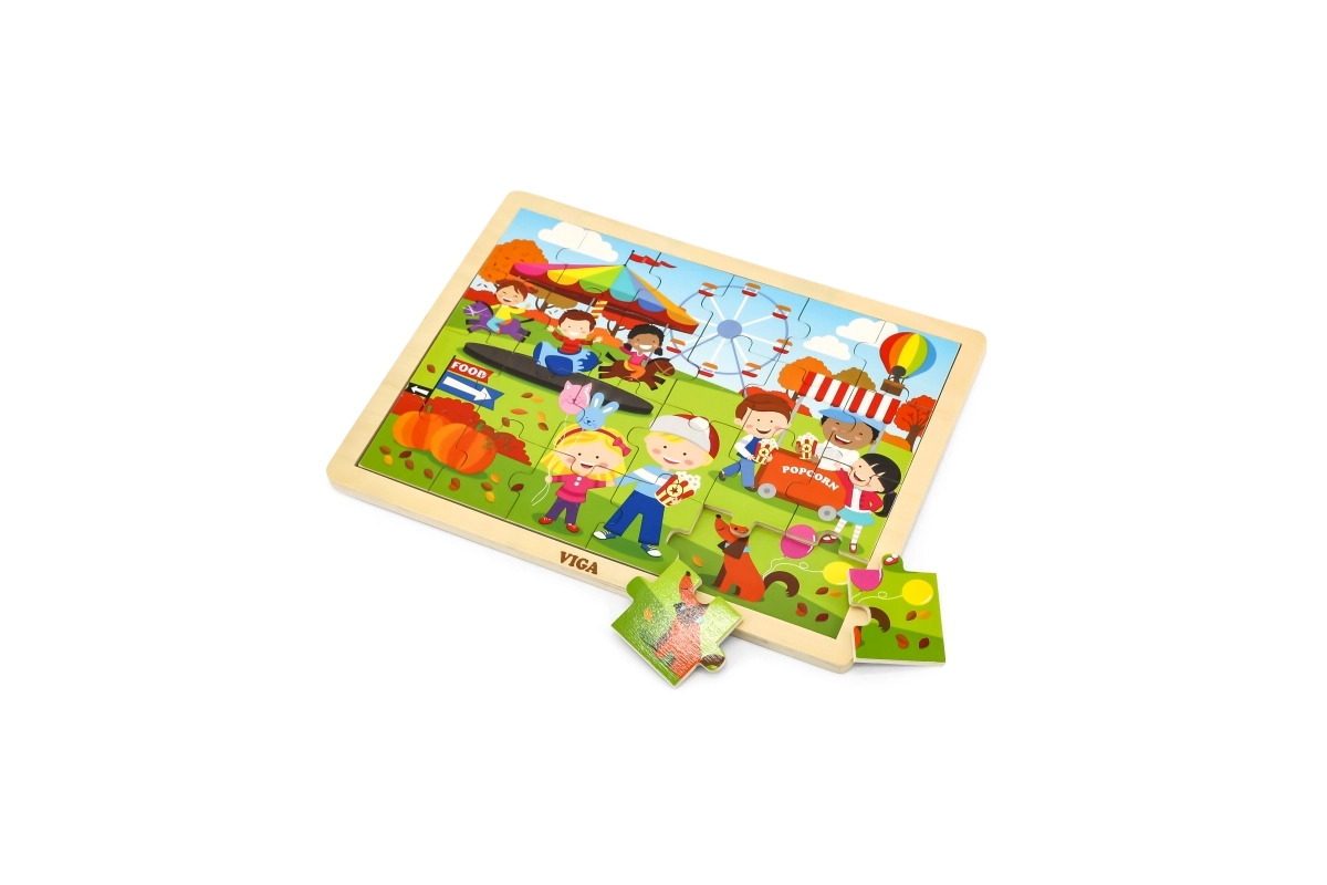 Ανακαλύψτε ένα ποιοτικό ξύλινο παζλ για παιδιά με χαρούμενη σκηνή φθινοπωρινού λούνα παρκ. Χάρη στα 24 στιβαρά κομμάτια και το πλαίσιο, συναρμολογείται εύκολα ακόμη και από μικρότερα παιδιά, τα οποία μέσα από το παιχνίδι εξασκούν φυσικά τον συντονισμό ματιού–χεριού και την αντίληψη σχημάτων και χρωμάτων.