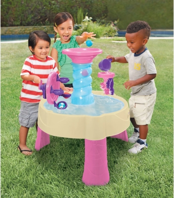 Ο πάγκος διαθέτει επαρκώς ευρύχωρη επιφάνεια παιχνιδιού για πολλά παιδιά και είναι κατασκευασμένος από ανθεκτικό πλαστικό, κατάλληλο για εξωτερική χρήση. Το εύκολο γέμισμα, μάζεμα και άφημα του νερού ενθαρρύνει την αυτόνομη αλλά και συνεργατική ενασχόληση. Ιδανικό για κήπο, βεράντα και καλοκαιρινές μέρες δίπλα στην πισίνα.
