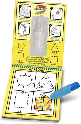 Αυτή η υδατογραφία με έμφαση στα σχήματα προσφέρει στα παιδιά διασκεδαστική και καθαρή ζωγραφική. Αρκεί να γεμίσετε το παρεχόμενο στυλό με νερό και τα χρώματα και οι κρυφές λεπτομέρειες εμφανίζονται μαγικά. Όταν η σελίδα στεγνώσει, εξαφανίζονται και η διασκέδαση ξεκινά ξανά.