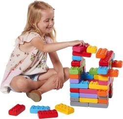 Τα μεγάλου μεγέθους τουβλάκια, εμπνευσμένα από πραγματικά τούβλα, ανεβάζουν τις παιδικές κατασκευές σε νέο επίπεδο. Χάρη στο χαμηλό βάρος και τον ασφαλή σχεδιασμό, είναι ιδανικά για μικρούς κατασκευαστές από 1 έτους. Το σετ έχει σχεδιαστεί ώστε από τα 110 κομμάτια να προκύπτουν εντυπωσιακά έργα – από απλούς τοίχους έως φανταστικές κατασκευές.