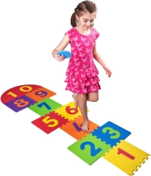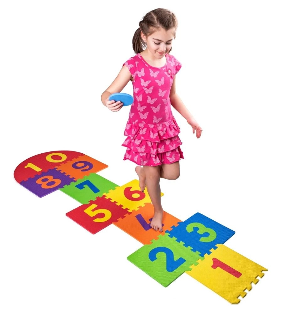 Το πήδημα πάνω σε αριθμημένα κομμάτια και το πέταγμα των δαχτυλιδιών αναπτύσσουν την ισορροπία, τον συντονισμό, την ευκινησία και την αριθμητική αντίληψη.