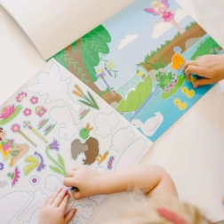 Τα αυτοκόλλητα περιλαμβάνουν πολύχρωμες εικονογραφήσεις από νεράιδες και μαγικά τοπία, επιτρέποντας στα παιδιά να δημιουργούν τις δικές τους ιστορίες και σκηνές. Το προϊόν είναι επίσης ένας εξαιρετικός τρόπος να μάθουν τα παιδιά υπομονή και ακρίβεια, καθώς συναρμολογούν κάθε σκηνή. Κατάλληλο για παιδιά από 3 ετών.