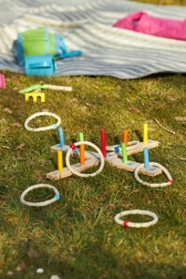 Η στιβαρή ξύλινη κατασκευή και τα δαχτυλίδια από ανθεκτικό σισάλ σχοινί εξασφαλίζουν μεγάλη αντοχή και ασφαλές παιχνίδι. Συναρμολογείται εύκολα και το παίρνετε μαζί σας στις διακοπές, στο πικνίκ ή στον κήπο.