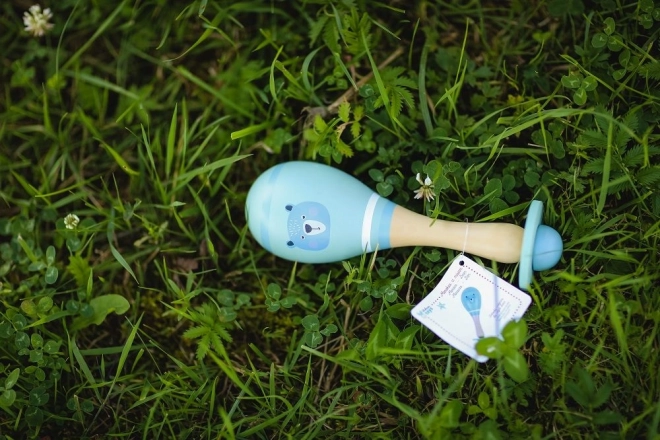 Αυτό το ποιοτικό ξύλινο μαράκα με απαλό μοτίβο αρκουδιού είναι το ιδανικό πρώτο μουσικό παιχνίδι για βρέφη. Όταν το κουνάτε, παράγει έναν ευχάριστο ήχο που ενισχύει την ακουστική αντίληψη και αναπτύσσει φυσικά την αίσθηση του ρυθμού.