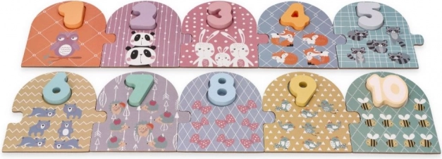 Αυτό το ποιοτικό ξύλινο παζλ συνδυάζει διασκέδαση και μάθηση. Κάθε αριθμός 1–10 έχει τη δική του πλακέτα με χαριτωμένα ζωάκια στον αντίστοιχο αριθμό, ώστε το παιδί να κατανοεί εύκολα τη σχέση μεταξύ ψηφίου και ποσότητας. Οι ανάγλυφες, πολύχρωμες αριθμοί κρατιούνται άνετα από τα μικρά παιδικά χεράκια και υποστηρίζουν την ανάπτυξη της λεπτής κινητικότητας και της οπτικής αντίληψης.