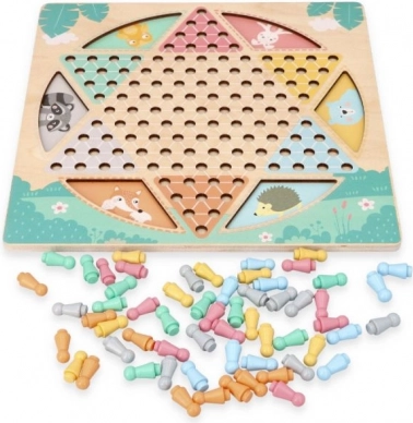 Απαλοί ζωόμορφοι χαρακτήρες και πολύχρωμοι πείροι/πιόνια ενισχύουν τη συγκέντρωση και κάνουν το παιχνίδι ελκυστικό για τα παιδιά.