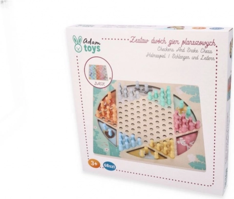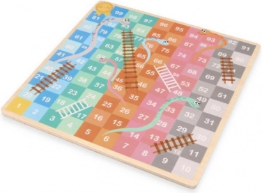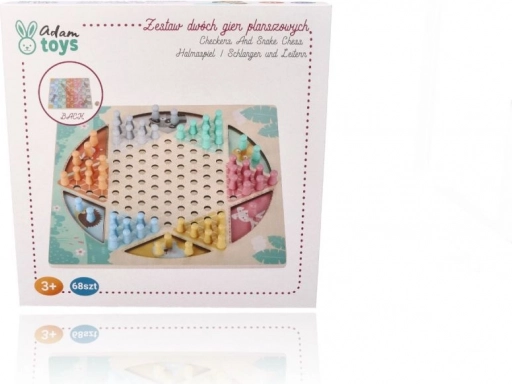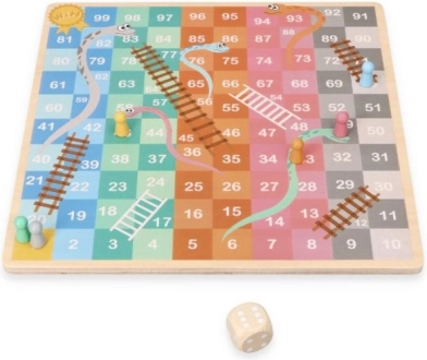 Αυτό το ξύλινο επιτραπέζιο προσφέρει δύο κλασικά παιχνίδια σε ένα. Στη μία πλευρά θα βρείτε τη στρατηγική HALAMA (κινέζικα ντάμα/κινέζικη ντάμα), όπου στόχος είναι να μετακινήσετε όλα τα κομμάτια σας στην απέναντι πλευρά. Στην άλλη πλευρά σας περιμένει το ζωηρό Φίδια και Σκάλες, όπου με το ζάρι προχωράτε προς τον στόχο, ανεβαίνετε σκάλες και γλιστράτε πάνω στα φίδια.