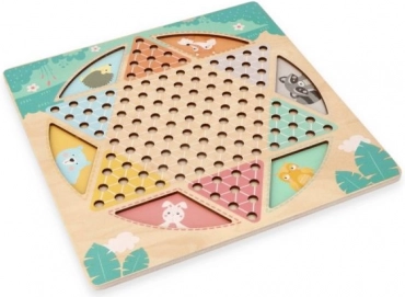 Η διπλής όψης ξύλινη σανίδα διαστάσεων περίπου 30 × 30 εκ. είναι διακοσμημένη με απαλά μοτίβα ζώων και συνοδεύεται από πολύχρωμα, εύκολα στο κράτημα πιόνια. Χάρη στην στιβαρή κατασκευή και την καθαρή γραφιστική, είναι ιδανική για κοινό παιχνίδι παιδιών και ενηλίκων.