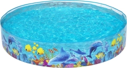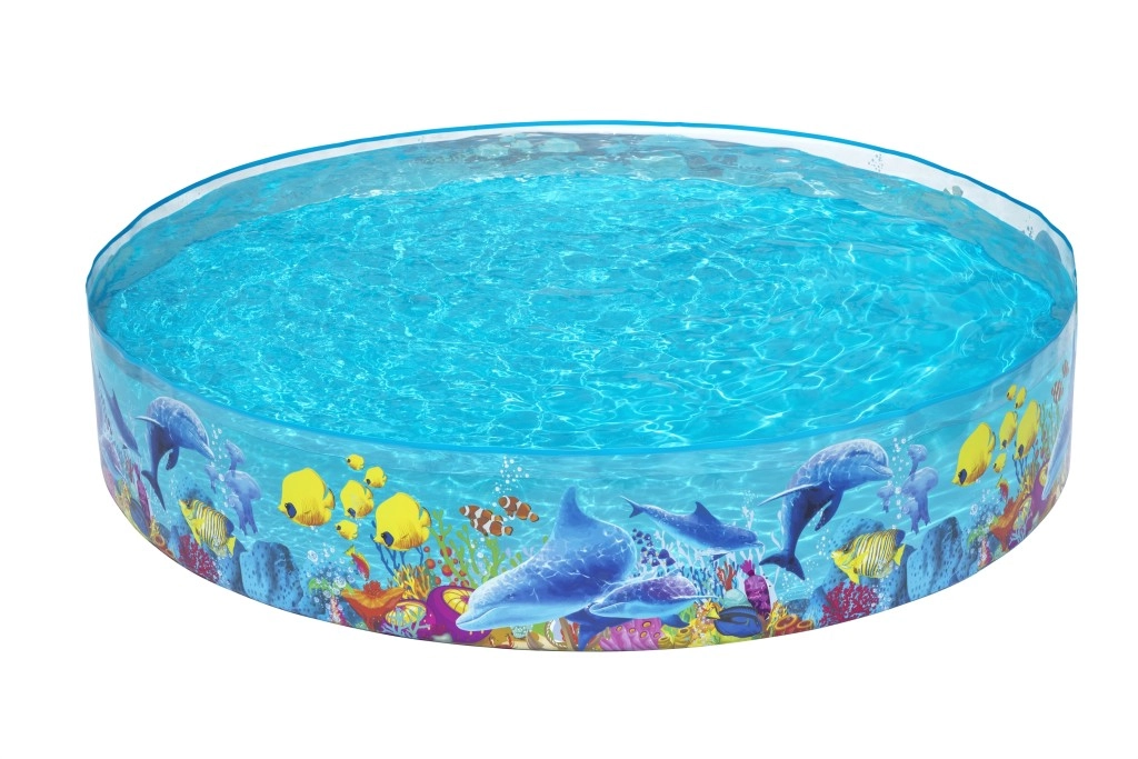 Η μεγάλη κυκλική αναδιπλούμενη πισίνα BESTWAY είναι ιδανική για τον κήπο ή το εξοχικό. Η κατασκευή σταθεροποιείται μόνη της μετά το γέμισμα, τα στιβαρά PVC τοιχώματα αντέχουν στη συνηθισμένη χρήση και τα θαλάσσια γραφικά με δελφίνια και ψαράκια ενθουσιάζουν άμεσα τα παιδιά. Η πισίνα καθαρίζεται εύκολα, διπλώνεται και αποθηκεύεται για την επόμενη σεζόν.