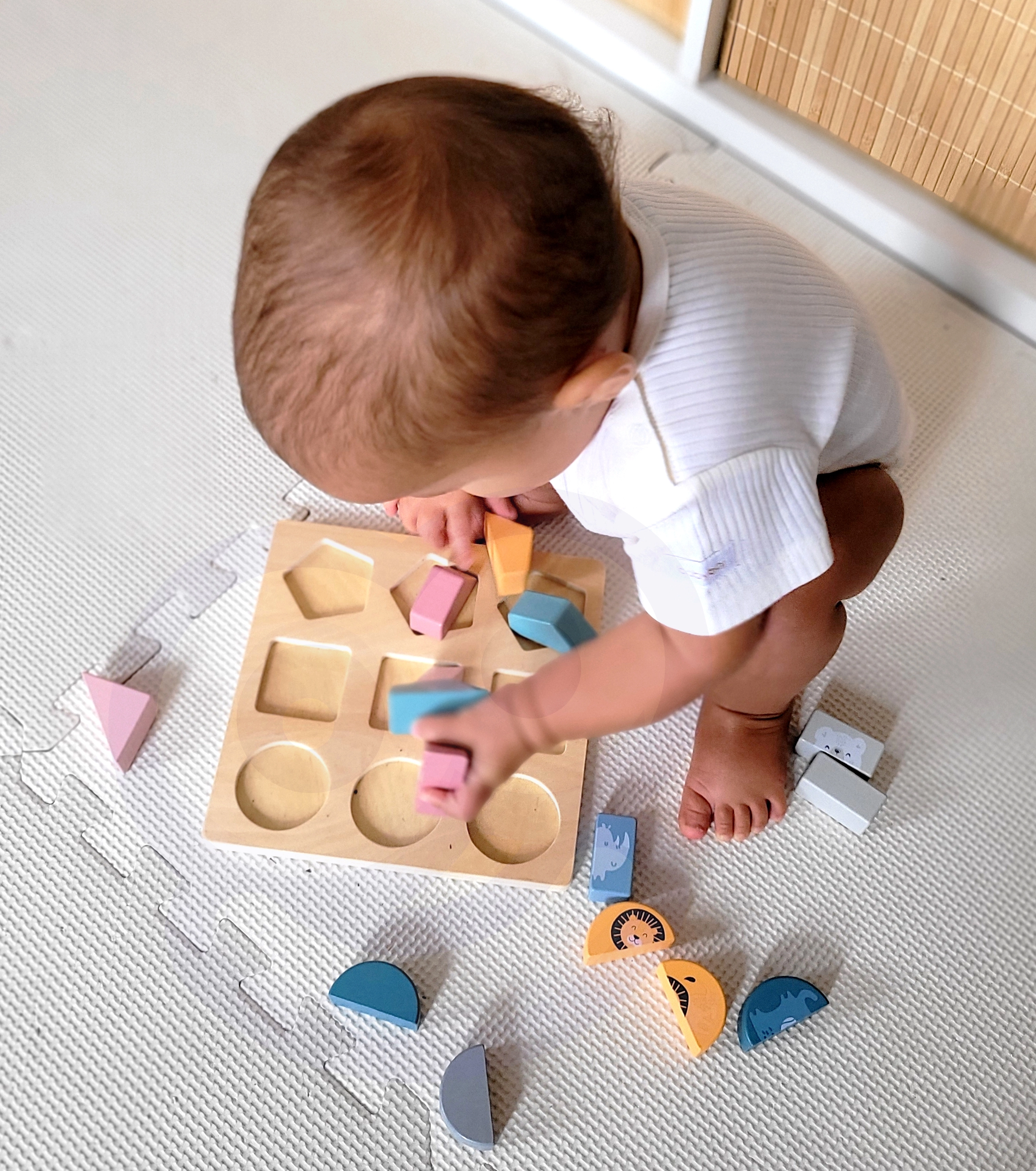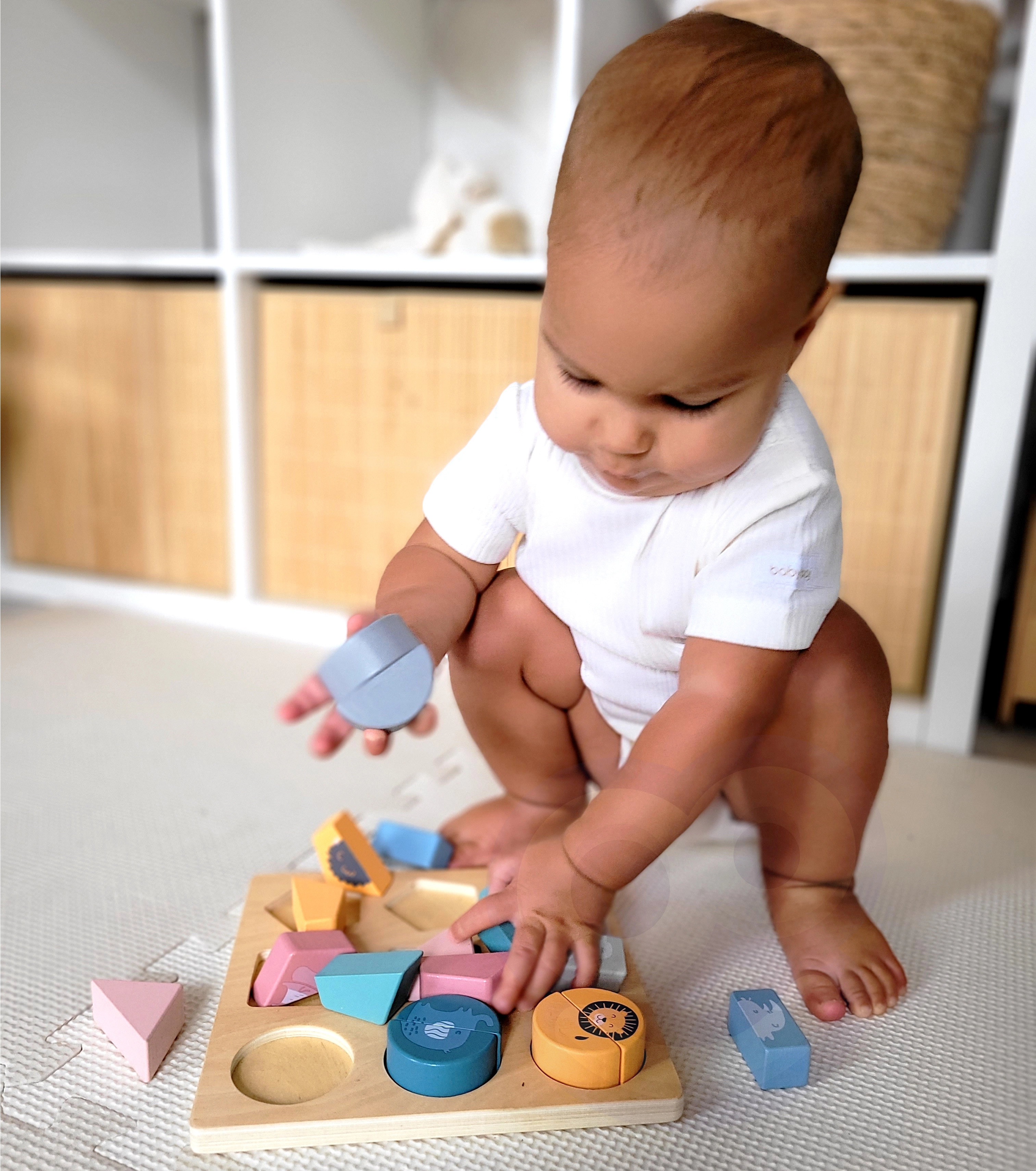 Η τοποθέτηση των σχημάτων στις σωστές θέσεις εξασκεί τον συντονισμό χεριού–ματιού, την υπομονή και τη συγκέντρωση από πολύ μικρή ηλικία.