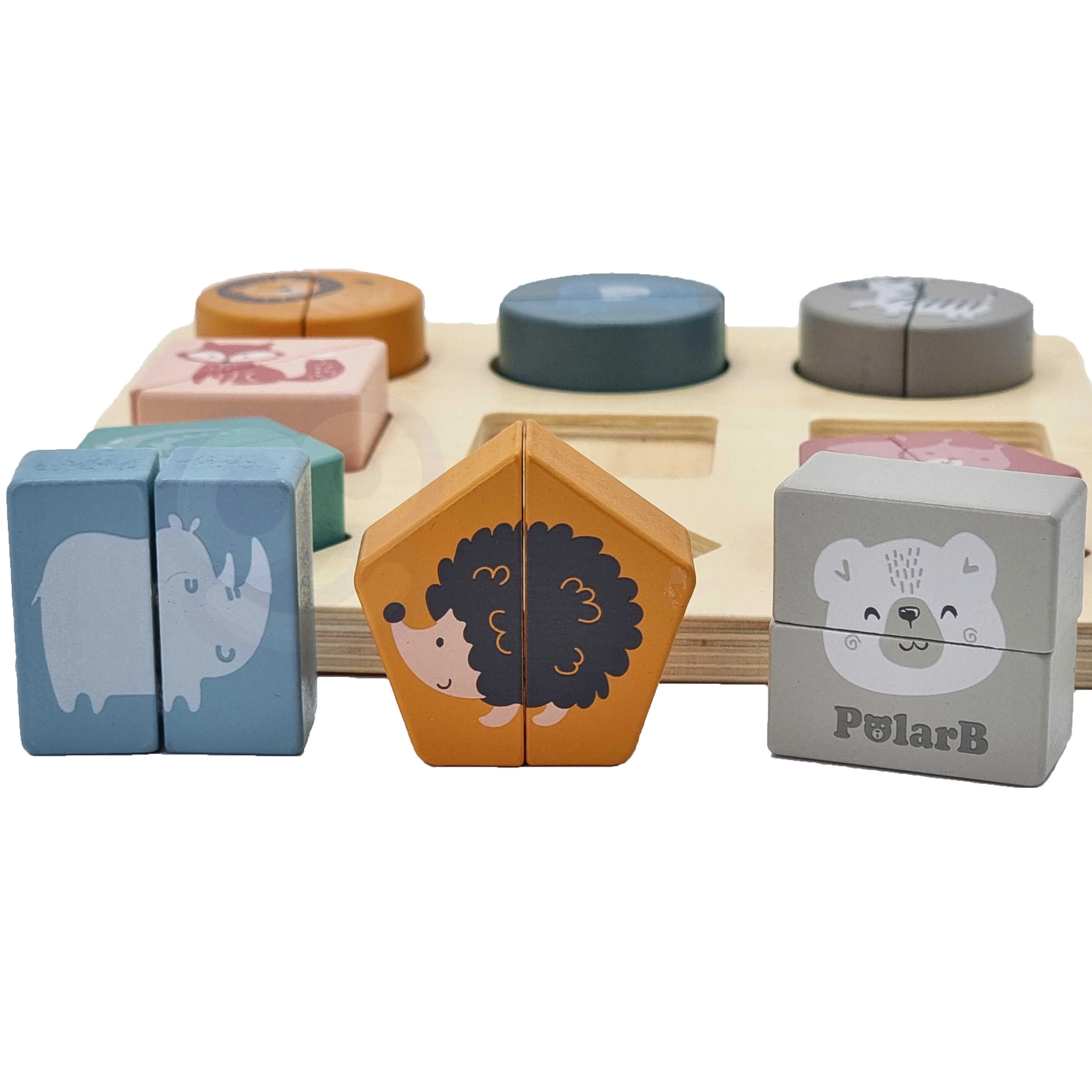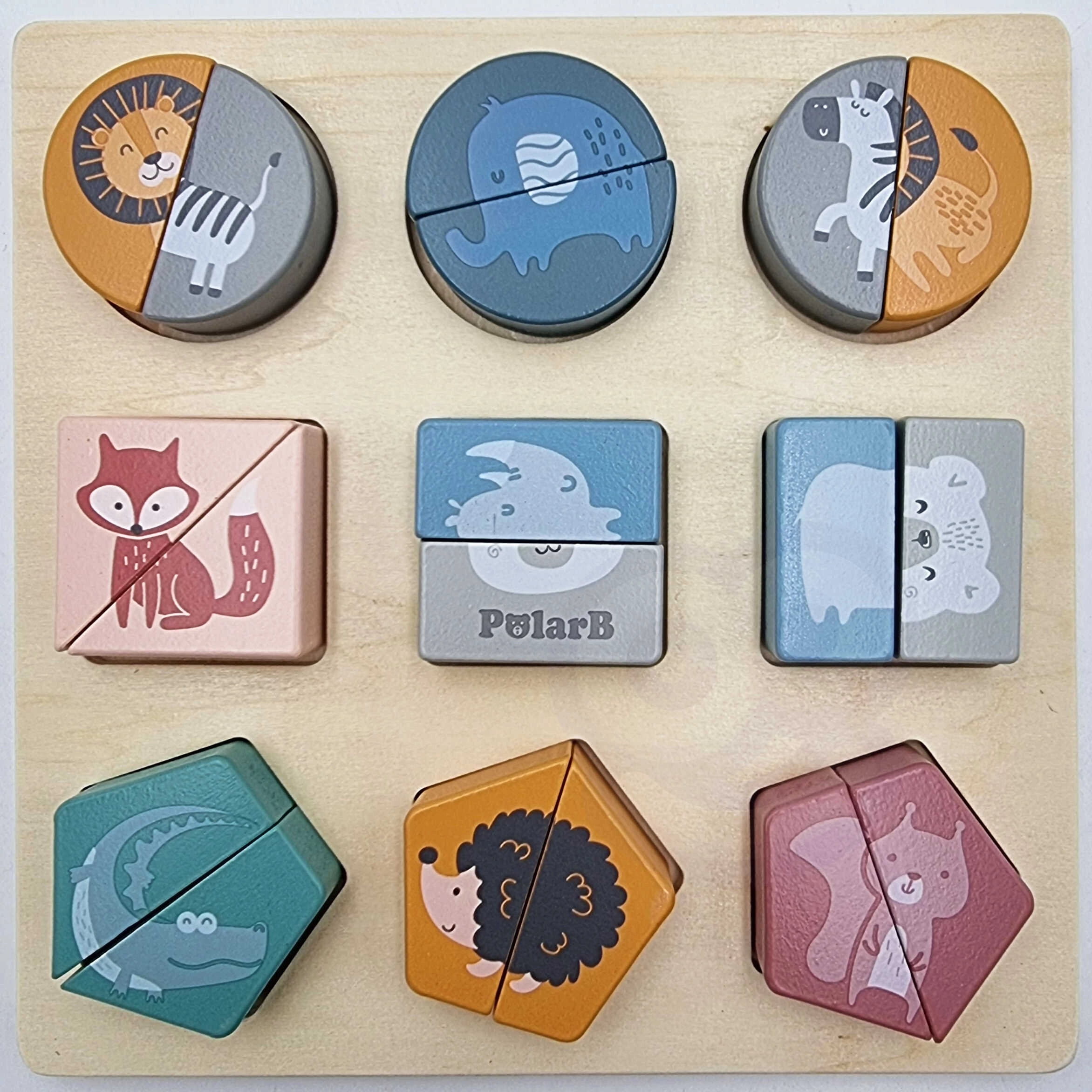 Τα 9 πολύχρωμα κομμάτια με ζωάκια υποστηρίζουν την ανάπτυξη της αντίληψης και εμπλουτίζουν το λεξιλόγιο των παιδιών – ένας διασκεδαστικός τρόπος για να μάθουν σχήματα και ονομασίες ζώων.