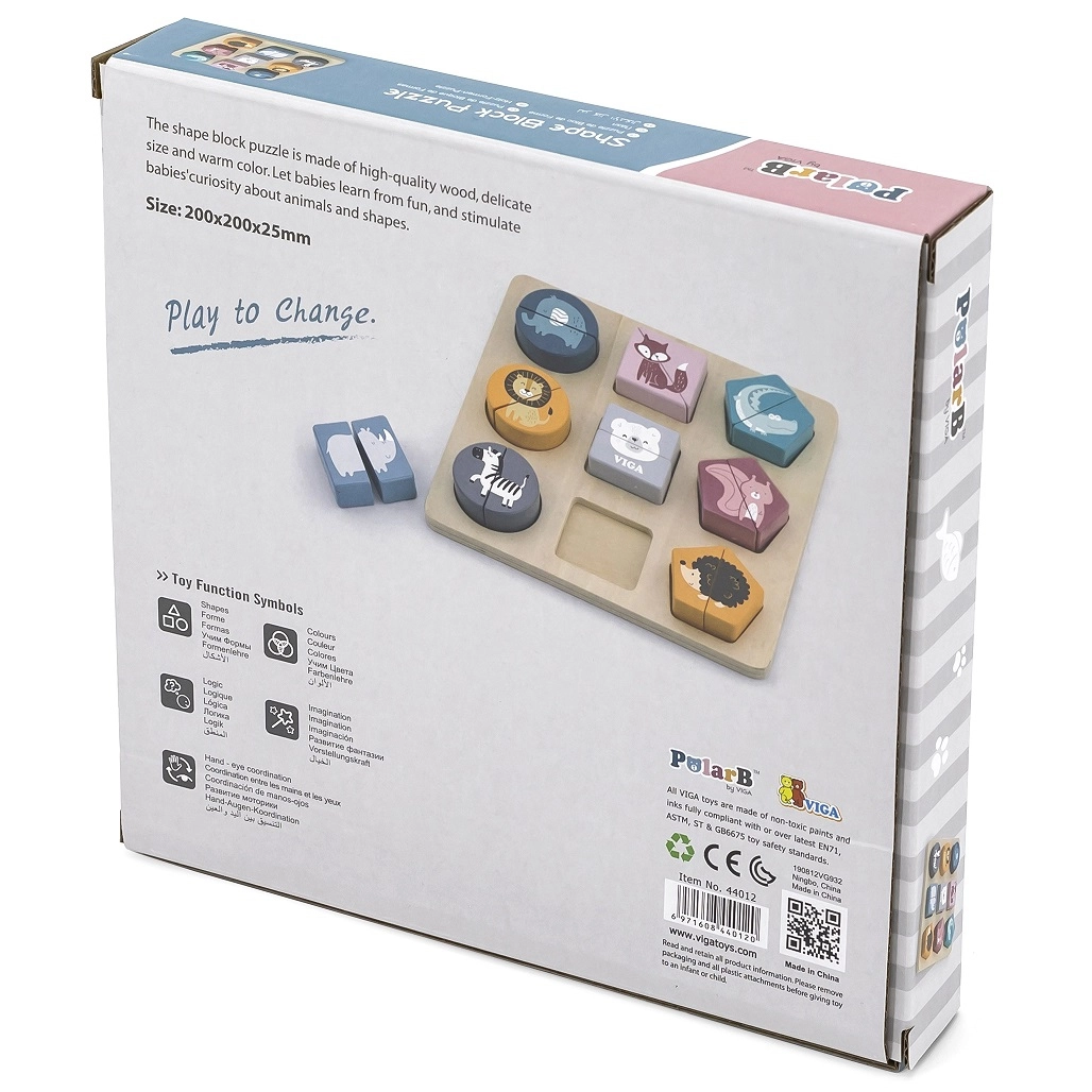 Ανακαλύψτε ένα διασκεδαστικό και εκπαιδευτικό παιχνίδι για τους μικρούς: το ξύλινο παζλ-κουμπωτό με ζωάκια από τη μάρκα Viga. Με 9 πολύχρωμα κομμάτια και στιβαρή ξύλινη βάση, τα παιδιά αναπτύσσουν λεπτή κινητικότητα, αναγνώριση σχημάτων και ζώων και λογική σκέψη. Κατασκευασμένο από ποιοτικό ξύλο, ασφαλές και οικολογικό. Κατάλληλο από 18 μηνών.