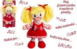 Η Λουτσίνκα είναι μια χαριτωμένη υφασμάτινη κούκλα ύψους 30 cm, ιδανική για τις πρώτες αγκαλιές και παιχνίδι. Με το πάτημα στην κοιλίτσα λέει: «Γεια, είμαι η Λουτσίνκα και θα σε μάθω τραγουδάκια» και τραγουδά αγαπημένα τσέχικα τραγούδια που τα παιδιά γνωρίζουν και αγαπούν.