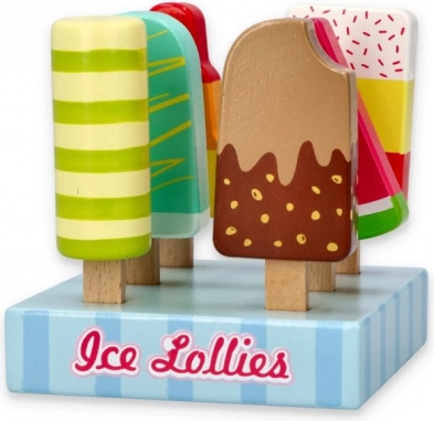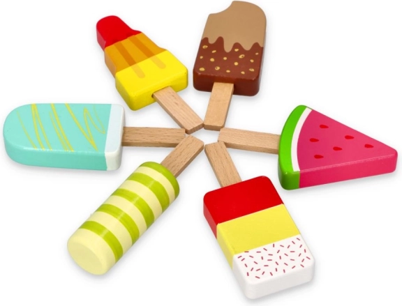 Έξι πρωτότυπα ξύλινα παγωτά με διαφορετικά σχήματα και μοτίβα εμπνέουν ευφάνταστο παιχνίδι και εξασκούν τη φαντασία.