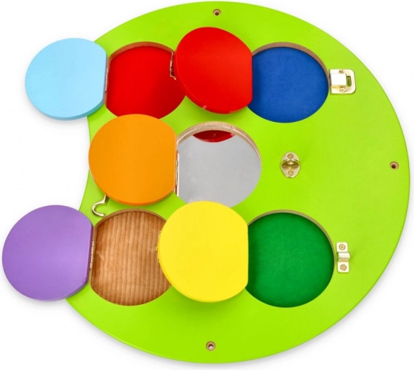 Εξερευνήστε έναν κόσμο γεμάτο χρώματα με αυτή την επιτοίχια σύνθεση σε σχήμα κάμπιας. Περιλαμβάνει πέντε διαδραστικά τμήματα που επιτρέπουν στα παιδιά να μαθαίνουν μέσα από το παιχνίδι και να αναπτύσσουν διάφορες δεξιότητες: